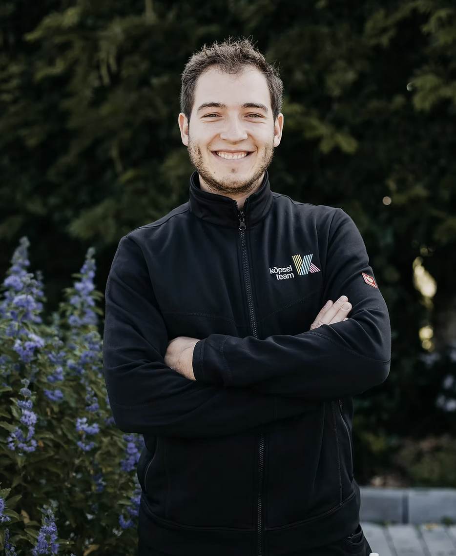 Leo: Hat beim Köpsel Team die Ausbildung absolviert und liebt seinen Job in der Höhe.