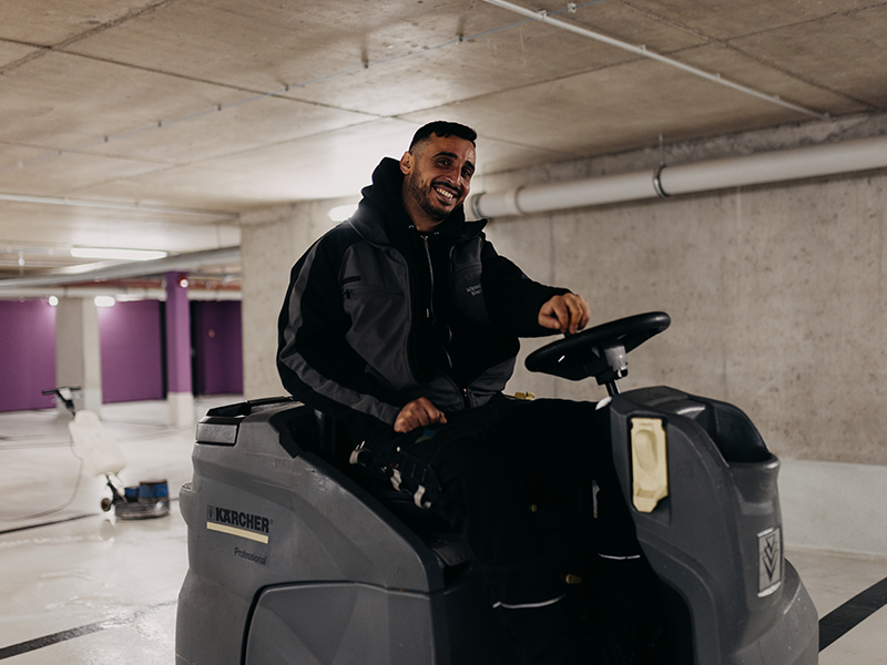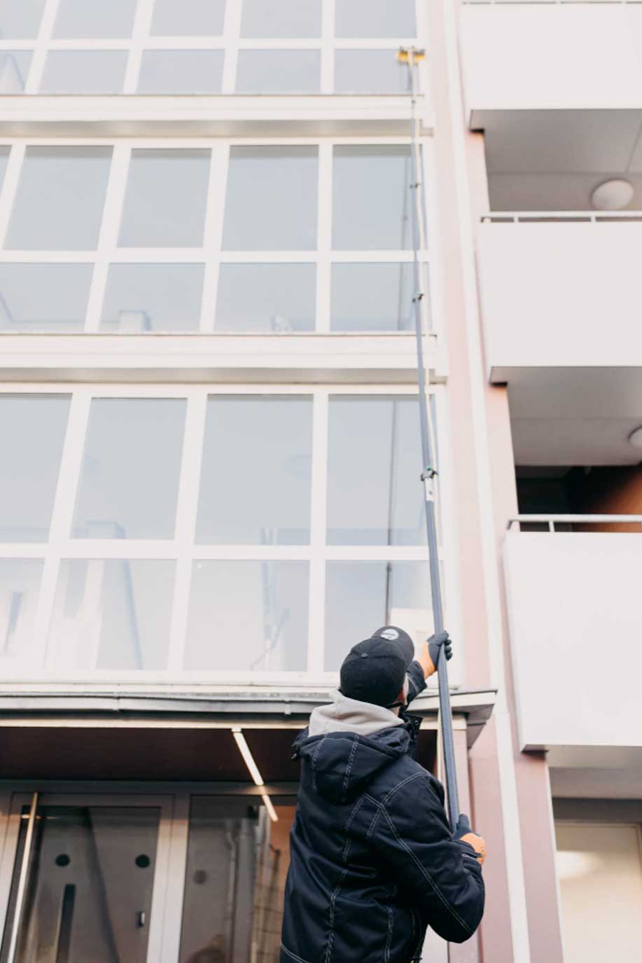 Wenn Sie einem gut gelaunten Menschen mit Teleskopstange oder Hochdruckreiniger begegnen, gehört er vermutlich zu unserem Team.